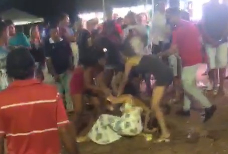 A cenas mostram os demais frequentadores tentando separá-las, mas era quase impossível. Não há informações de quando e nem onde o vídeo foi gravado.
