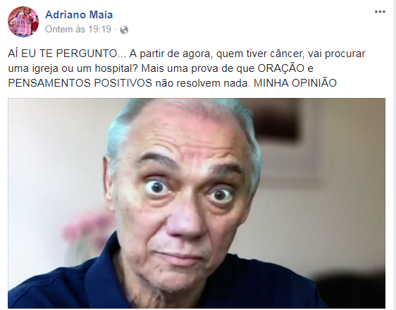 Manaus – Adriano Maia está no centro de uma polêmica nas redes sociais. O músico amazonense fez uma publicação no seu perfil oficial do Facebook neste sábado: sobre o apresentador “Marcelo Rezende ter trocado a medicina e acreditando na fé”.