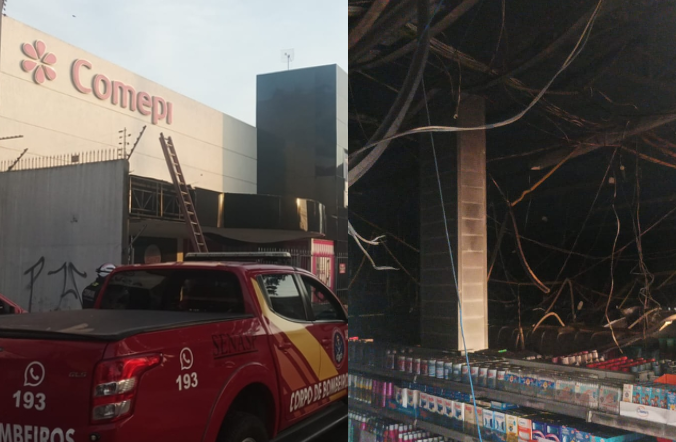 MANAUS (AM) – Parte da loja Comepi, localizada na avenida Grande Circular, Zona Leste de Manaus, ficou destruída após pegar fogo nesta terça-feira (6). Segundo a polícia, o incêndio iniciou por volta das 4h30, pegando o forro da loja de cosméticos.