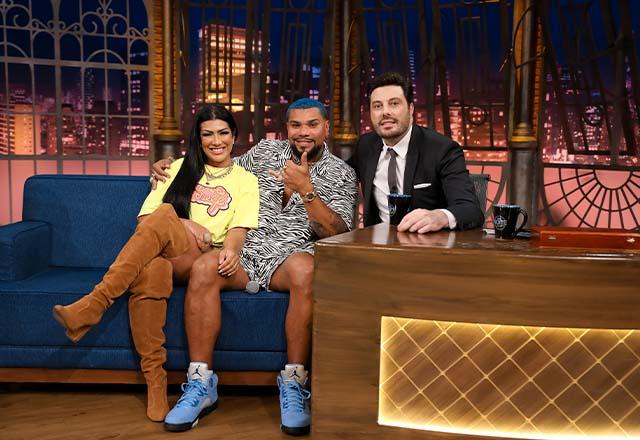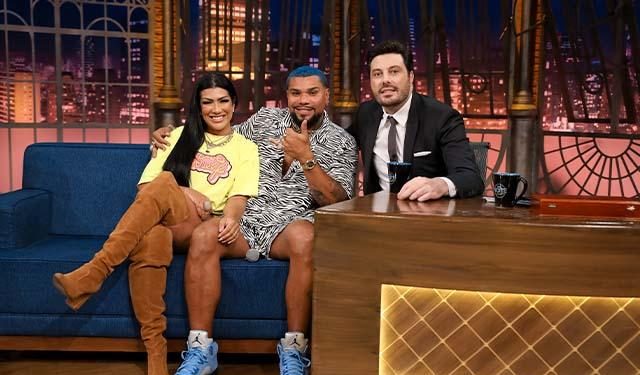 SÃO PAULO (SP) – Naldo Benny e Ellen Cardoso, a Moranguinho, participaram do The Noite com Danilo Gentili, após viralizar por inúmeras histórias contadas pelo cantor, entre as quais o encontro com Chris Brown, o fato de já ter tomado café com Will Smith, a promessa de trazer Cristiano Ronaldo ao Flamengo e mais.