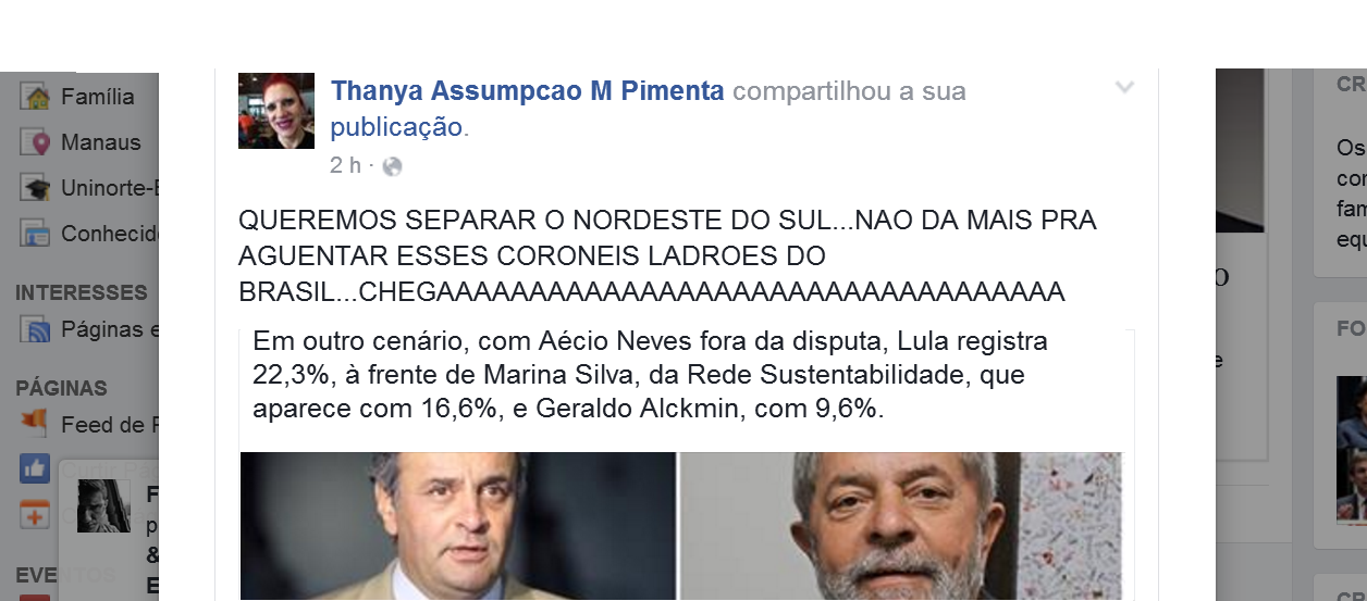 Nossa estagiária Nayandra Portela, sofreu sérios ataques após publicar uma matéria sobre a corrida presidencial de 20018, onde o Ex- Presidente Lula é apontado como vitorioso em primeiro turno.