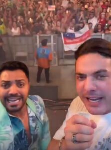 O cantor também apareceu ao lado de Tirullipa no palco. Wesley se esbaldo nas águas do Amazonas e garantiu que é mais um apaixonado por nossas belezas naturais.