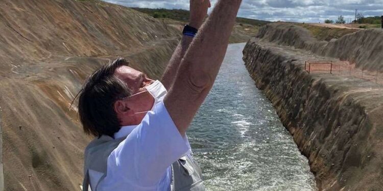 CEARÁ | O presidente Jair Bolsonaro acionou na manhã desta sexta-feira (26) a comporta responsável por fazer as águas do Eixo Norte do projeto de transposição do Rio São Francisco chegarem até o Ceará.