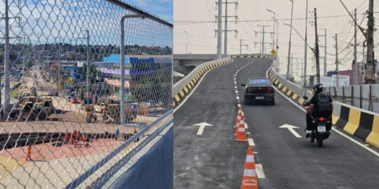 MANAUS (AM) – Um homem que passava pelo Complexo Viário Rei Pelé, na zona Leste de Manaus, registrou nesta segunda-feira (17) a instalação de grades de proteção metálica no local.