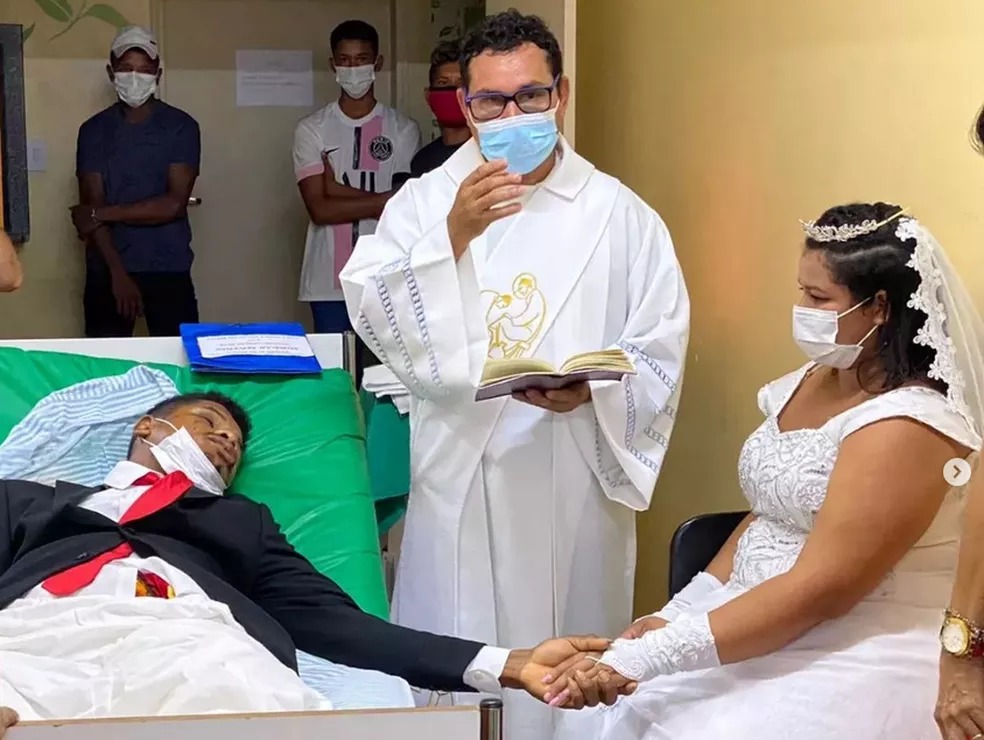 De acordo com a Prefeitura de Garrafão do Norte, Jedielso sofreu um acidente e fraturou o fêmur um dia antes da festa de casamento. Mas a noiva Patrícia decidiu levar a cerimônia para o hospital.
