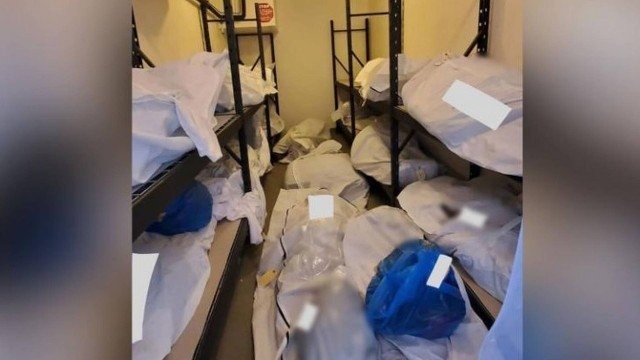 “Os corpos estão definitivamente empilhados duas vezes no chão. Não há elevador para ajudar a colocar os corpos na prateleira”, disse um funcionário da emergência que testemunhou cenas semelhantes de corpos.