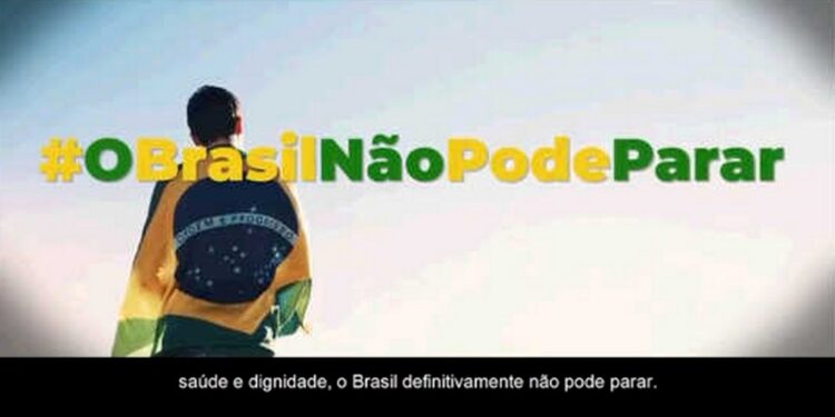 O governo federal preparava para colocar no ar possivelmente já amanhã. A peça central é um vídeo, ainda não finalizado, mas que já foi distribuído para a militância digital do presidente e circulou em grupos de WhatsApp, em que um narrador menciona categorias profissionais e martela que o país não pode parar por eles.
