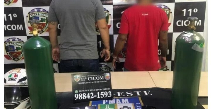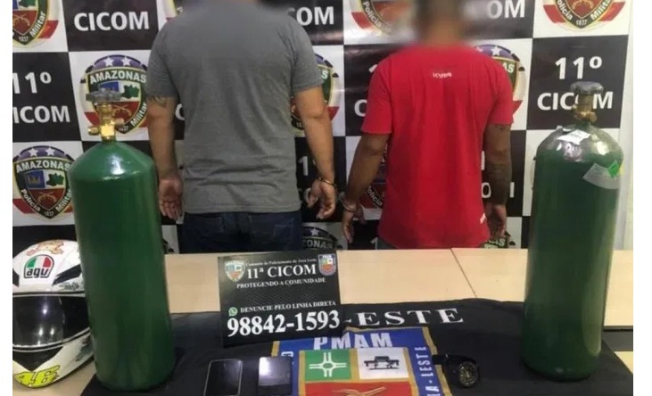 MANAUS – AM | Na tarde desta quarta-feira (27), dois homens, de 38 e 34 anos, foram presos tentando vender cilindros de oxigênio falsos. Os suspeitos aproveitaram o desespero de familiares de pacientes para aplicar o golpe.