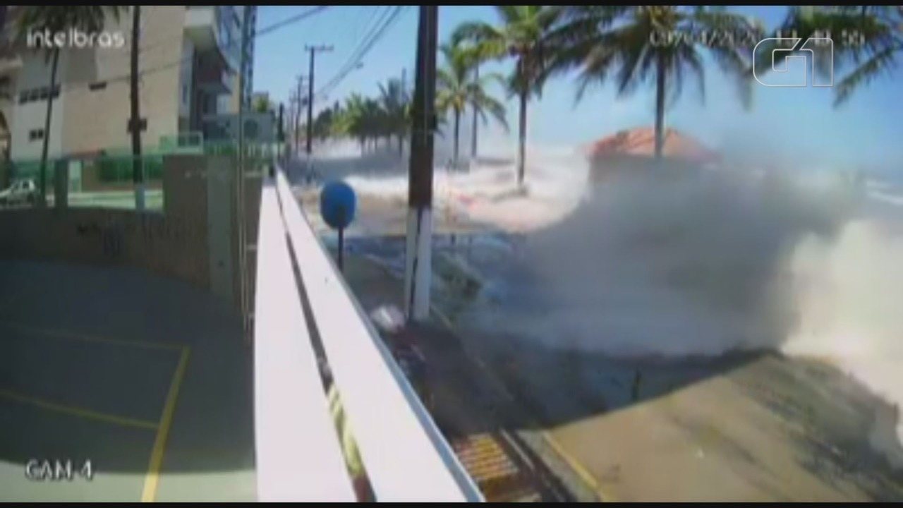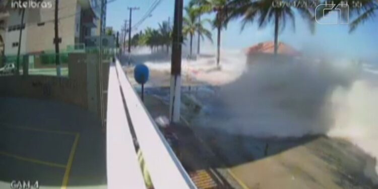 Este perfil compartilhou o momento exato em que as ondas invadem a orla: