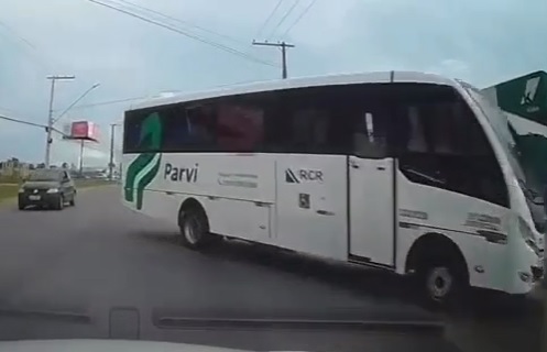 Uma cena infelizmente comum no trânsito de Manaus por muito pouco não causou uma tragédia nesta quarta-feira (7), na rua dos Oitis, Distrito Industrial, zona Leste de Manaus. Um carro que trafegava na sua mão viu um ônibus da Parvi atravessar sua frente para entrar no pátio da empresa de aluguel e fretamento. Por sorte ele conseguiu frear bruscamente e evitar o impacto, que poderia ser fatal.
