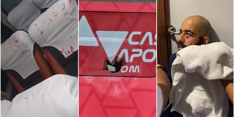 BAHIA | O ônibus que levava os jogadores do Bahia para a partida contra o Sampaio Corrêa nesta quinta-feira, 24, na Arena Fonte Nova, em Salvador (BA), foi atingido por uma bomba. No transporte também estavam presentes os membros da comissão técnica do clube, comandado pelo treinador Guto Ferreira, ex-Ceará. Entre os feridos, a situação mais grave é do goleiro Danilo Fernandes, que foi atingido por estilhaços no rosto e encaminhado para o hospital.