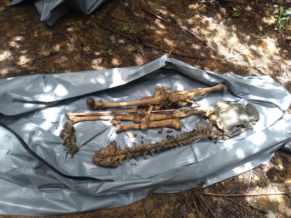Ainda de acordo com a polícia, uma tíbia foi estava entre os ossos com uma placa de fixação parafusada, o que indica que a vítima já havia feito cirurgia. Entre os ossos havia também cordas amarradas.