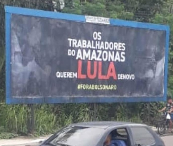 MANAUS AM | Desde que o presidente Lula conseguiu na Justiça a anulação de suas condenações por suspeitas de corrução, seus apoiadores estão em euforia. E em Manaus a situação não é diferente. Nesta terça-feira uma foto de um outdoor viralizou nas redes sociais dos amazonenses, pedindo a volta do petista ao comando do Brasil e a saída do presidente Bolsonaro. A propaganda afirma que os trabalhadores do Amazonas estão com Lula.