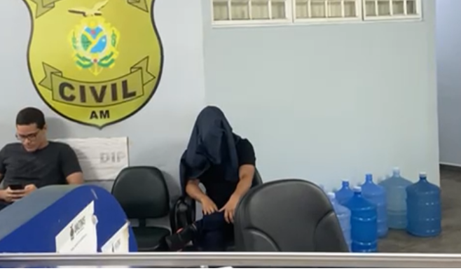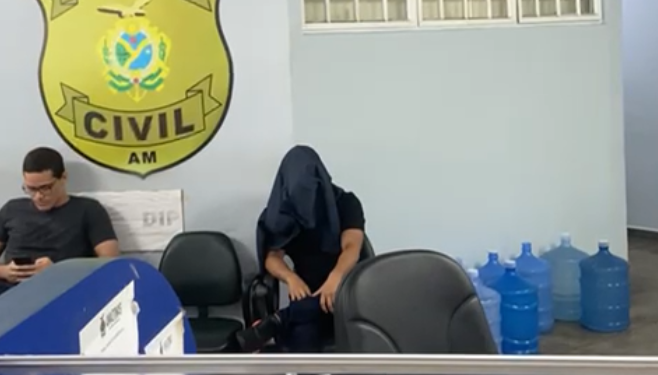 MANAUS (AM) – Joaquim Rodrigues do Nascimento, último integrante do “Bonde dos Mauricinhos”, esteve na manhã desta sexta-feira (6) no 1º Distrito Integrado de Polícia (DIP), localizado no bairro Praça 14, Zona Centro-Sul de Manaus, onde prestou depoimento. Envergonhado, ele escondeu o rosto com uma blusa.