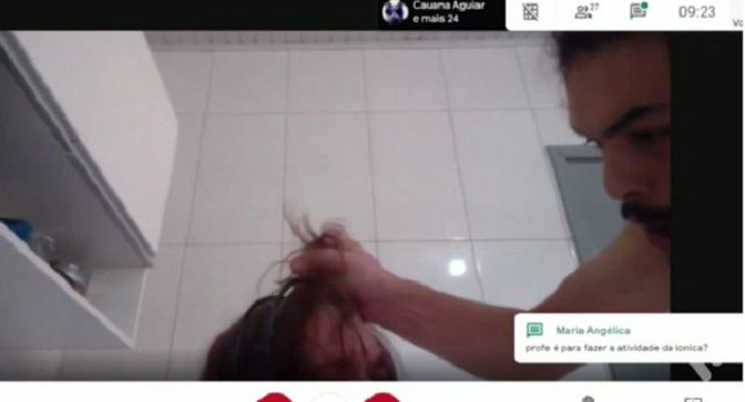 Nas imagens que estão com a polícia, o menino acompanhava a aula, quando teve os headphones arrancados com força e foi puxado bruscamente pelo padrasto, que repete a agressão logo depois. Passados alguns instantes, o garoto retorna ao ambiente virtual chorando.