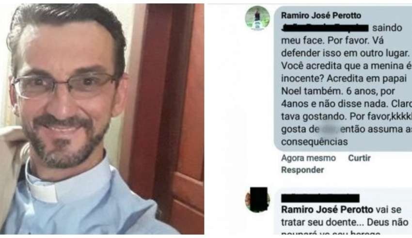 “Duvido uma menina ser abusada com 6 anos, por 4 anos, e não falar. Ela compactuou com tudo e agora é inocente. Gosta de d*** então assuma as consequências”, disse o padre a um de deus seguidores, que rebateram a declaração.