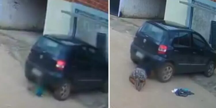 GOIÁS | Um pai atropelou o filho de 1 ano e 5 meses ao sair da garagem de casa e, por um triz, não atingiu a cabeça do menino, em Águas Lindas de Goiás, no Entorno do Distrito Federal. Um vídeo registrou quando a mãe aparece, desesperada, procurando o filho e o encontra debaixo do carro, logo após o acidente.