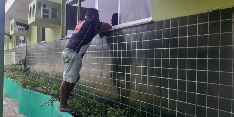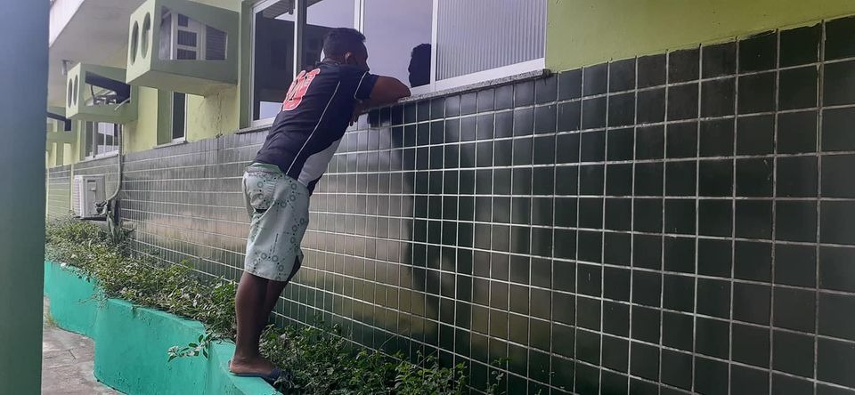 AMAZONAS | Rafael Gaia, pai do bebê Ycaro Rafael Marinho, de 1 ano e 6 meses, chamou a atenção da equipe médica do Hospital Coreolano Cidade Lindoso, no município de Barreirinha, ao fazer esforço para ver o filho, que está internado com Covid-19.