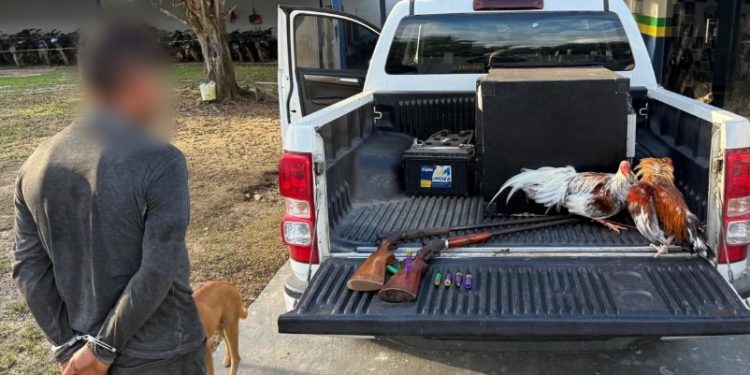 Na prisão, a polícia encontrou come ele uma arma e galos preparados para rinha, o que aumenta para três os crimes nas costas dele.