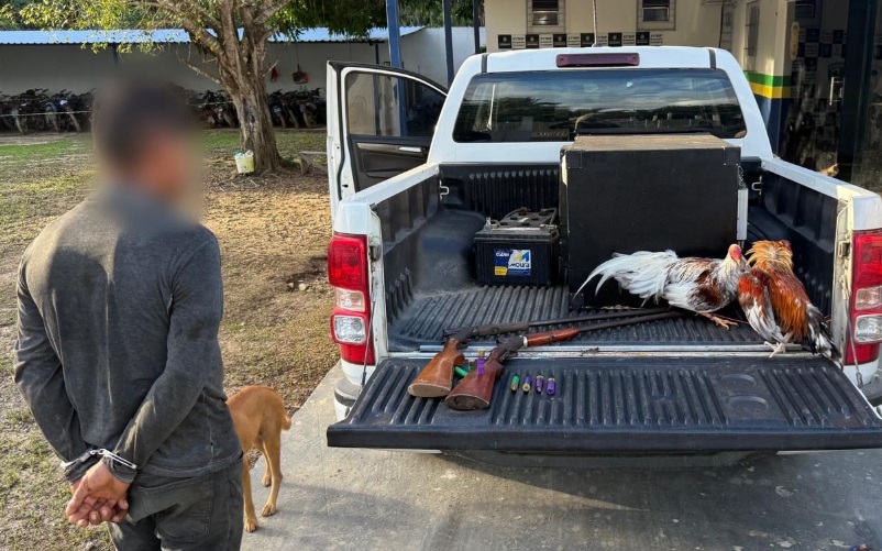 Na prisão, a polícia encontrou come ele uma arma e galos preparados para rinha, o que aumenta para três os crimes nas costas dele.