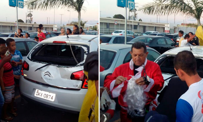 Muitas pessoas acompanhavam a chegada do Papai Noel e o vídeo do acidente se espalhou nas redes sociais. Com o impacto do pouso, o vidro traseiro do carro foi quebrado e parte do porta-malas ficou amassado. Apesar do susto, o shopping avisou através das redes sociais que o Papai Noel não se machucou.