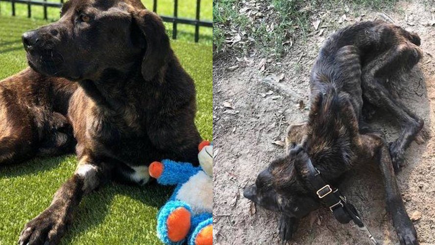 Champ foi resgatado por voluntários da Rescue Dogs Rock NYC e já estava sem forças até para se levantar. Sob cuidados de veterinários, o cão está se recuperando bem e já se mantém de pé.