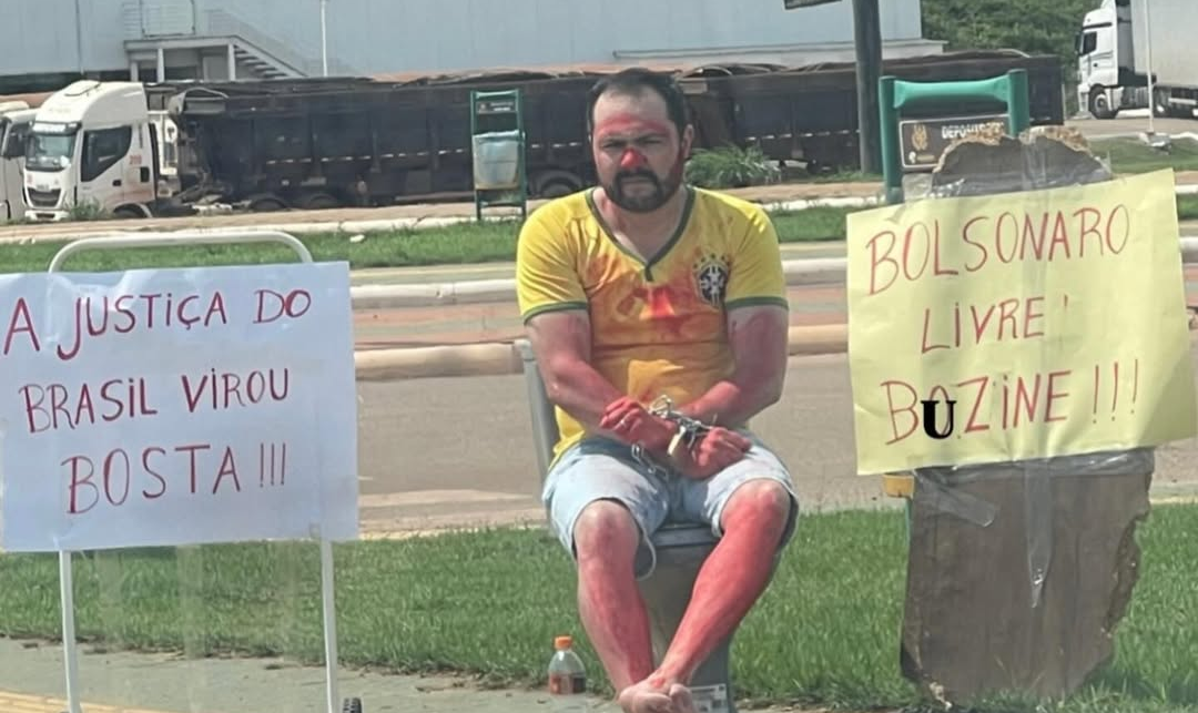 PARAUAPEBAS (PA) – Um manifestante favorável ao ex-presidente Jair Bolsonaro realizou um protesto incomum às margens de uma rodovia em Parauapebas, no Pará, na última quarta-feira (19). O homem apareceu em vídeos acorrentado a um vaso sanitário, segurando cartazes e pedindo apoio dos motoristas que passavam pelo local.