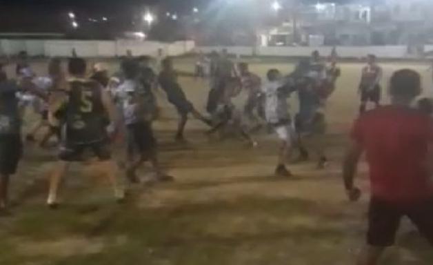 De acordo com testemunhas, um dos times cobraria um pênalti e após o clube adversário empurrar os jogadores e ofendê-los verbalmente, o time que estava em vantagem acabou revidando as agressões. Nas imagens é possível ouvir barulhos de tiros, mas não há informações se houve feridos. Assista;