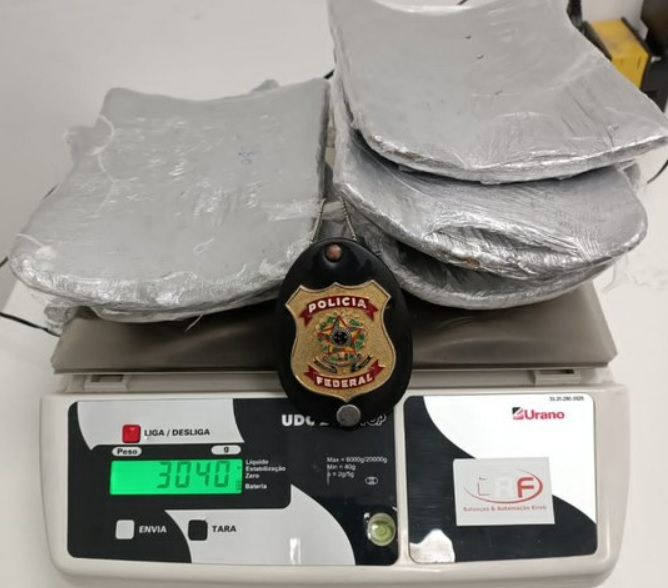 A amazonense, que chegou em voo oriundo de Belém/PA, transportava mais de três quilos de droga atada às próprias pernas.