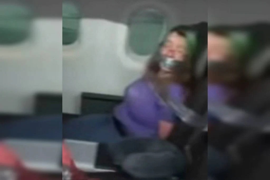 No trajeto dos passageiros até a saída é possível ouvir a mulher gritando “Vocês! Vocês! Vocês!”, enquanto os comissários de bordo acenavam calmamente com a cabeça, se despedindo das pessoas. Muito agitada, a mulher se contorcia com os braços aparentemente colados ao assento. A fita prateada também havia sido colada sobre a boca da passageira.