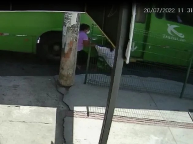 Imagens de câmeras de segurança mostram que a idosa ainda estava descendo do coletivo, quando o motorista acelerou o ônibus, a derrubando no chão e passando por cima do pé dela.