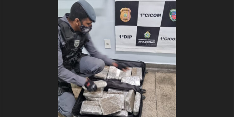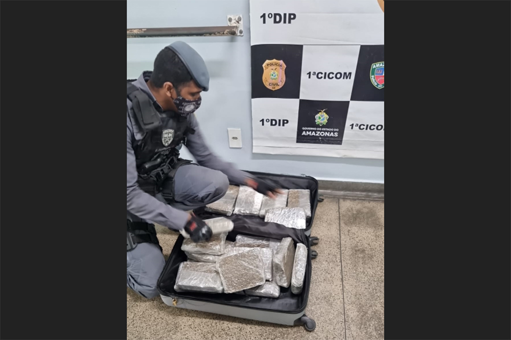 Os policiais foram acionados pelo Coordenador de Operações, a fim de atender uma ocorrência de que haveria uma mala contendo substância entorpecente, no Porto de Manaus, no navio Tavares. Ao chegar no local, a mala foi localizada e aberta na presença de uma equipe da Força Tática, tendo sido conferidos 18 tabletes de maconha, totalizando 18kg.
