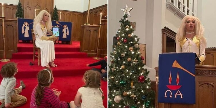 CHICAGO – EUA | Em Chicago, um pastor chamou a atenção ao se vestir de drag queen para liderar os cultos da igreja com as crianças. Aaron Musser, que foi ordenado no último verão, pode ser visto, em algumas fotos, se dirigindo a crianças de um púlpito em sua igreja usando uma peruca loira, vestido branco e maquiagem enquanto espalha a palavra em sua paróquia na Igreja Luterana de São Lucas de Logan Square.