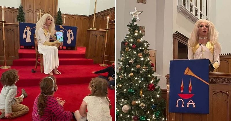 CHICAGO – EUA | Em Chicago, um pastor chamou a atenção ao se vestir de drag queen para liderar os cultos da igreja com as crianças. Aaron Musser, que foi ordenado no último verão, pode ser visto, em algumas fotos, se dirigindo a crianças de um púlpito em sua igreja usando uma peruca loira, vestido branco e maquiagem enquanto espalha a palavra em sua paróquia na Igreja Luterana de São Lucas de Logan Square.