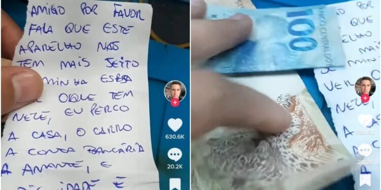 No bilhete, o pastor assume ter uma amante e pede para que o técnico não encontre conserto para o celular. O homem ainda deixou o “agrado” de R$ 150 para que Zalmir acobertasse a situação.