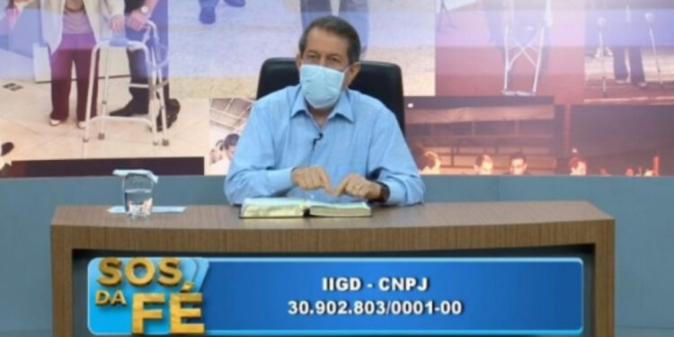 “Eu queria agora dar as nossas contas pros irmãos, porque se estivesse nas igrejas vocês fariam as suas ofertas, entregariam seus dízimos, mas não estou e nem pode porque está proibido ai. Não é proibido, está orientado a não sair de casa. E então o que eu tenho que fazer? Você pode transferir pela internet pras nossas contas”, diz o pastor para os fiéis telespectadores.