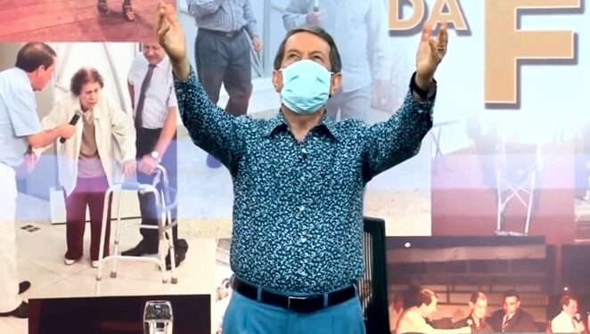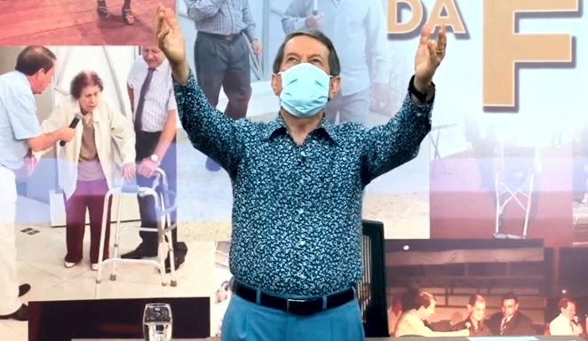 BRASIL | Durante um programa televisivo da Igreja Internacional da Graça de Deus, o pastor R.R. Soares ensinou os fiéis a fazerem uma oração que expulsa o coronavírus do corpo, seja de quem ora ou de um terceiro. O curioso é o que o líder religioso aparece nas imagens usando no rosto uma máscara de proteção que evita o contágio com vírus. O vídeo com momento está circulando nas redes sociais.