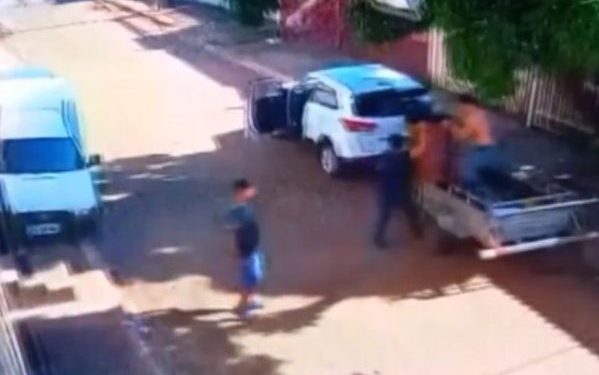 Nas imagens registradas por uma câmera de segurança, dois homens tiram o tonel de metal da carroceria de um veículo branco e em seguida deixam a cena do crime. Uma pessoa passa na rua e encontra a vítima, com a ajuda de vizinhos ele é retirado do tambor, está nu e ferido.