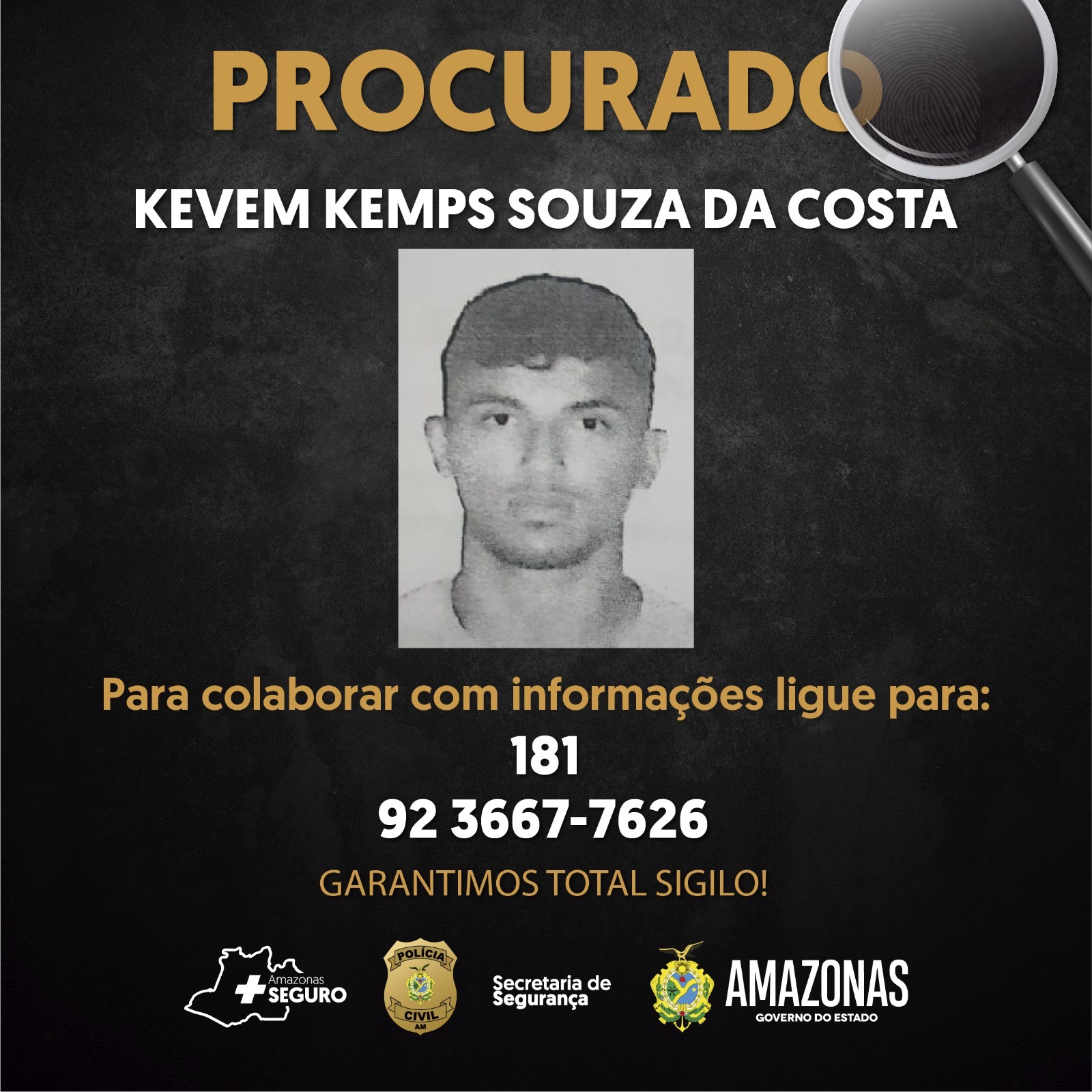 MANAUS (AM) – A Polícia Civil do Amazonas (PC-AM), por meio do 26º Distrito Integrado de Polícia (DIP), solicita ampla divulgação da imagem de Kevem Kemps Souza da Costa, 20, por envolvimento na tentativa de homicídio qualificado contra um homem, de 24 anos. O crime ocorreu no dia 12 janeiro deste ano, no bairro Monte das Oliveiras, zona norte de Manaus.