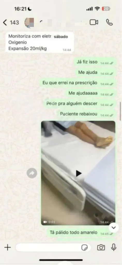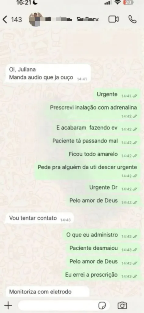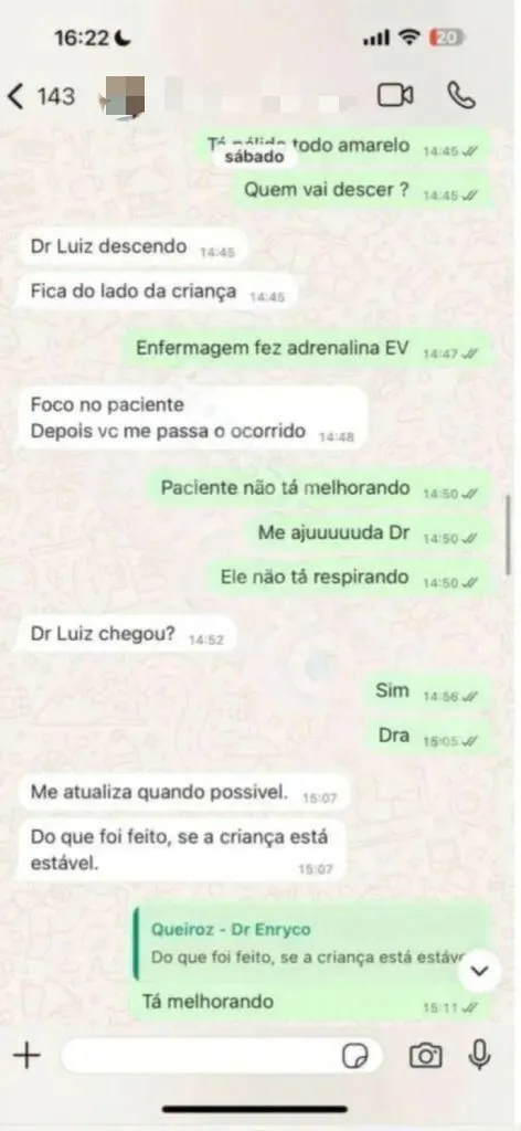 Segundo o delegado, Enryko Queiroz atestou a veracidade das mensagens trocadas no domingo (23) em que a médica, que não tem especialização em pediatria, demonstrava desespero e despreparo ao perceber que havia prescrito uma dosagem de medicação errada para a criança. Ela admite o erro durante a conversa.