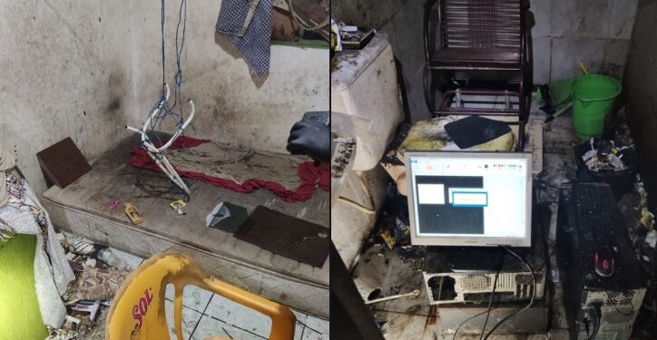 Um dos cômodos mais sujos é o banheiro, que não parece ser utilizado para o seu propósito. Com um computador colocado no chão, o teclado apoiado em cima do vaso sanitário e uma cadeira embaixo do chuveiro, o local ainda conta com uma inscrição na parede.