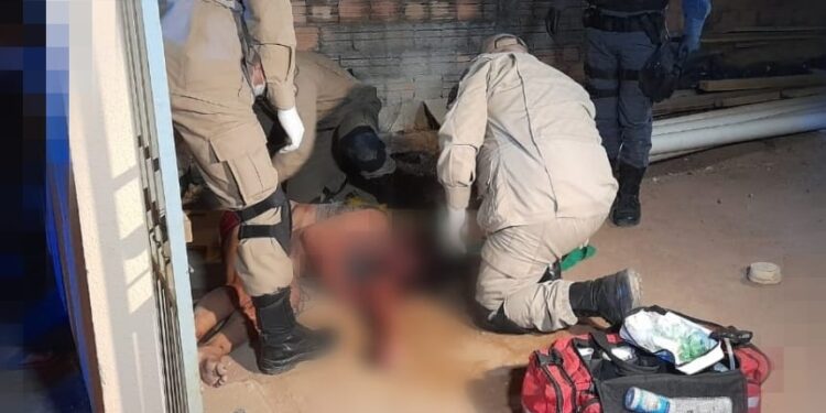 Dentro da residência, que estava com poças de sangue por vários cantos, os policiais encontraram a mulher no chão, amarrada com uma corda nos braços, muito ferida e coberta de sangue. Ela chegou a ser levada para o Hospital Regional em estado gravíssimo, mas não resistiu.