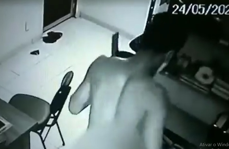 BRASIL- Um bandido resolveu assaltar uma loja de ferramentas de madrugada, em João Pessoa, na Paraíba. Além da ação criminosa chamou a atenção nas câmeras de segurança o fato do marginal estar nu. Usando apenas uma máscara contra a Covid ele entra, revira tudo e leva o que quer.