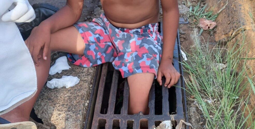 FRAIBURGO (SC) – Uma mãe e o filho de seis anos tomaram um susto no último sábado (12). O menino teve que ser resgatado após ficar com uma das pernas presas na grade de um bueiro em Fraiburgo, em Santa Catarina.