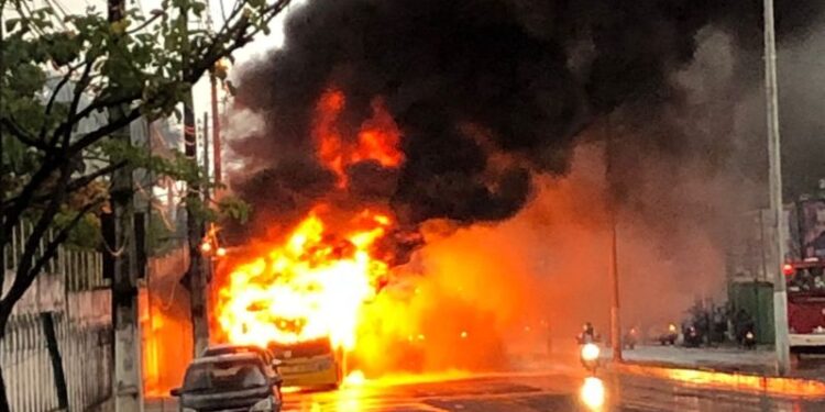 MANAUS – AM | Um ônibus expresso da empresa Global Green pegou fogo na avenida Constantino Nery, no fim da tarde desta segunda-feira (11). Segundo informações preliminares, se trata de uma veículo da linha 652. O fato aconteceu nas proximidades do shopping Millennium, no sentido centro-bairro.