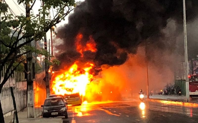 Nas redes sociais, passageiros e outros moradores registraram o momento em que as chamas estavam altas. Confira: