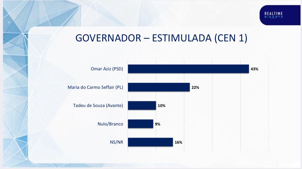 AMAZONAS – Divulgada nesta segunda-feira (15), a nova pesquisa Real Time Big Data para o Governo do Amazonas apresenta o crescimento de três pontos percentuais da pré-candidata Professora Maria do Carmo (PL), em relação ao último levantamento divulgado pelo instituto em outubro deste ano.