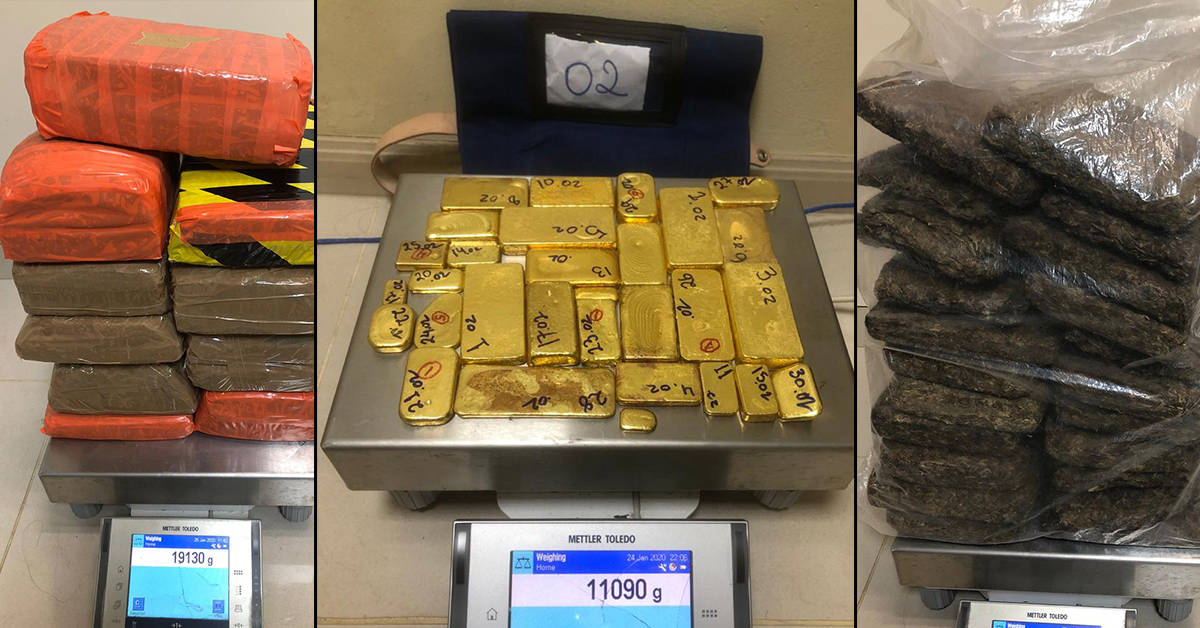 O primeiro caso ocorreu na noite de sexta, 24, quando um homem, 32, foi preso enquanto tentava enganar a fiscalização da Receita Federal no aeroporto e, assim, concluir a liberação para a conclusão da venda de aproximadamente 35 quilos de ouro para dois americanos, os quais pretendiam levar o metal precioso para Nova York.