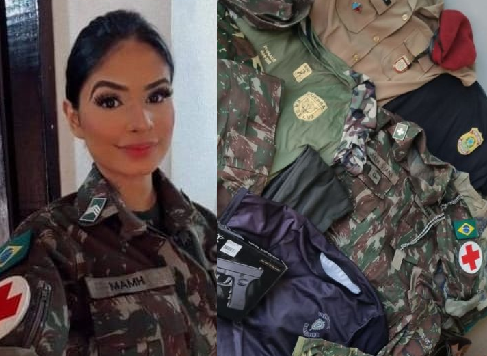 Em setembro de 2022, a PF realizou a busca e apreensão na residência da investigada. No local da busca, foram encontrados diversos uniformes de diferentes forças de segurança pública, bordados com nomes falsos, broches oficiais, coturnos, um teste de gravidez falso e uma pistola airsoft.