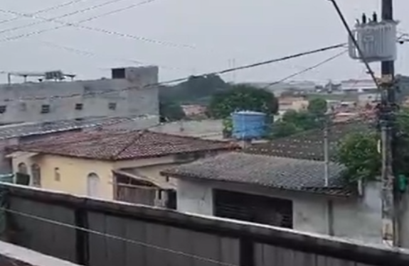 De cima de sua varanda, um morador registrou a ocorrência enquanto os vizinhos tentavam se proteger e se esconder.